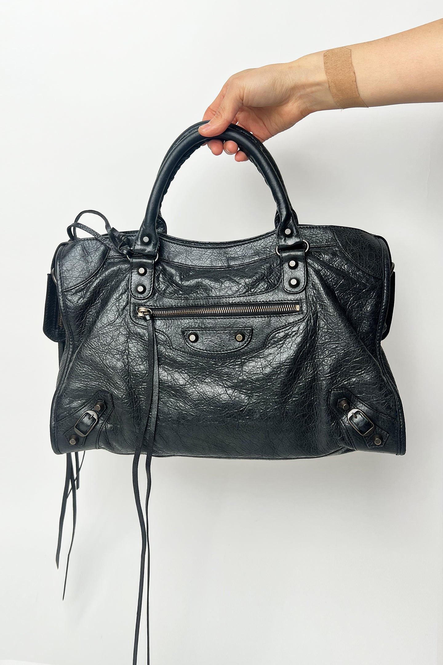 Vintage 2000s black distressed leather Balenciaga City bag