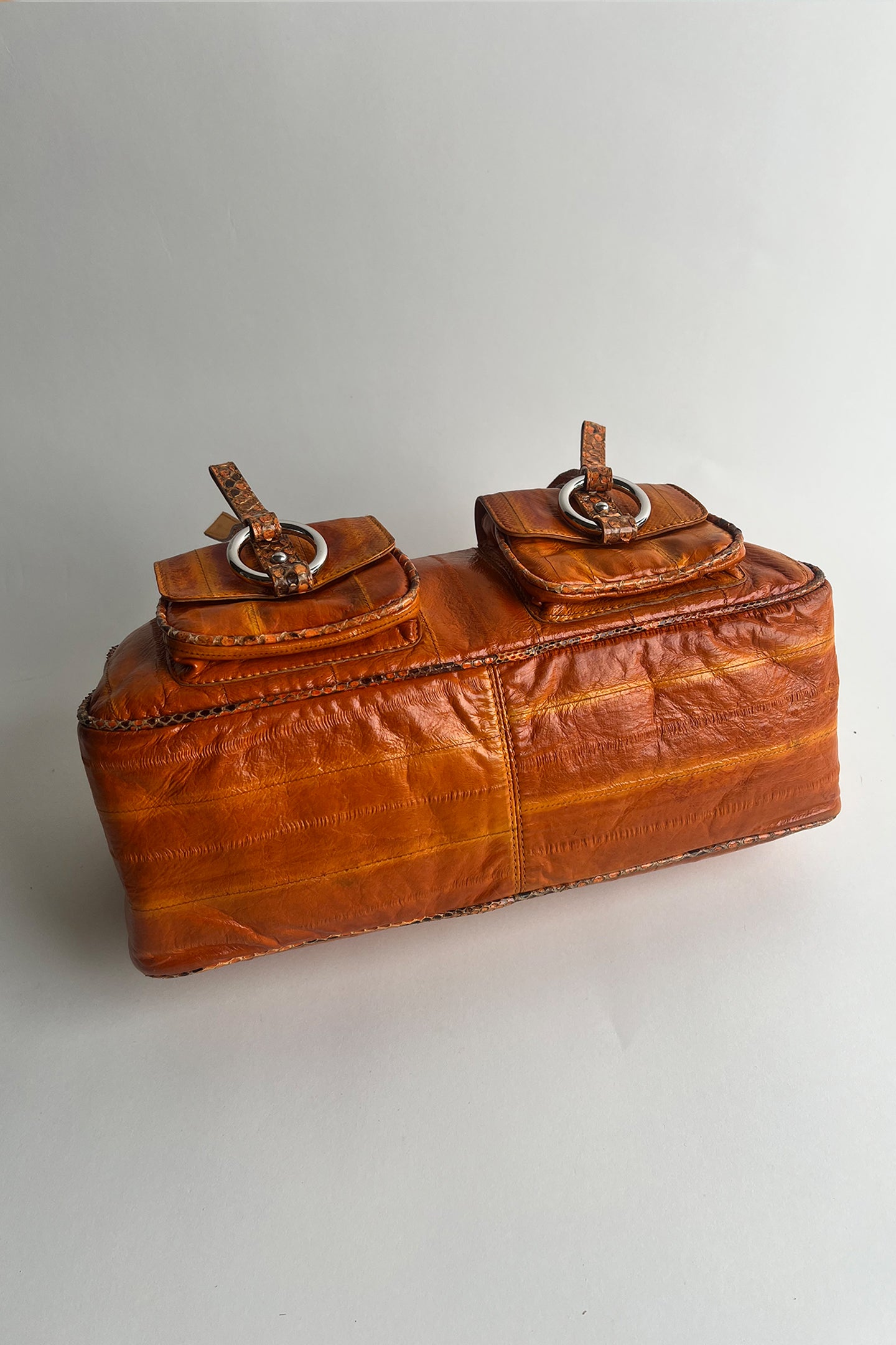 Vintage 90s y2k D&G orange leather handbag with python trims