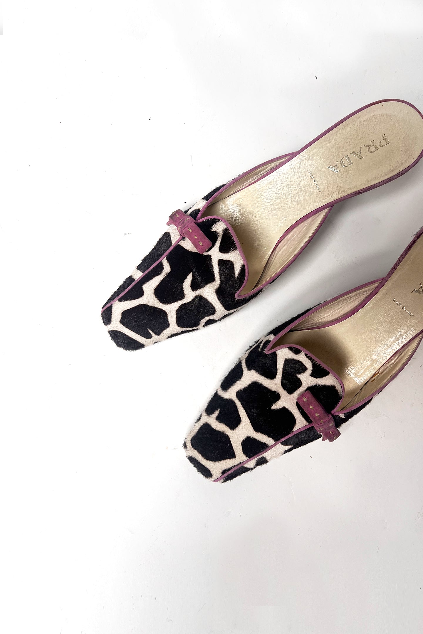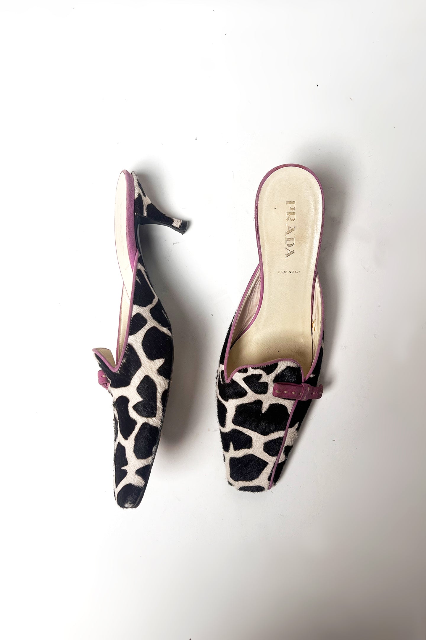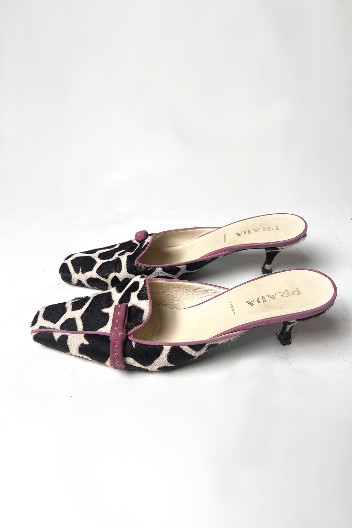 Vintage Prada zebra print cowhide kitten heel with pink suede trim 38
