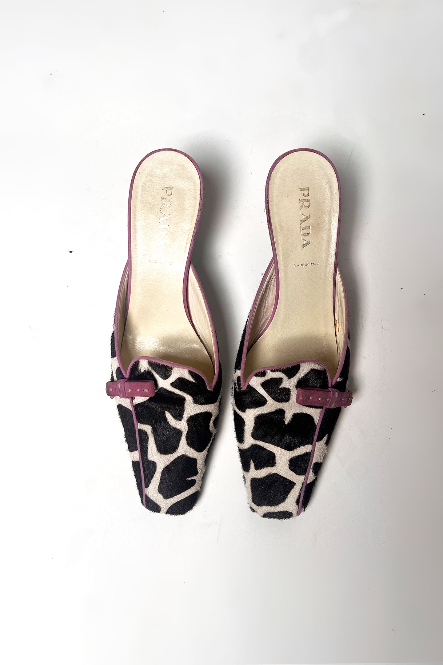 Vintage Prada zebra print cowhide kitten heel with pink suede trim
